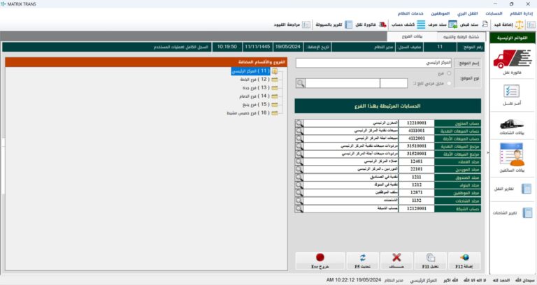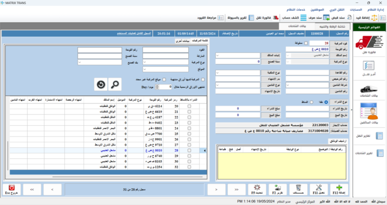 بيانات الشاحنات والصيانة بيانات السائقين بيانات المقطورات بيانات الناقلين جدول أسعار النقل