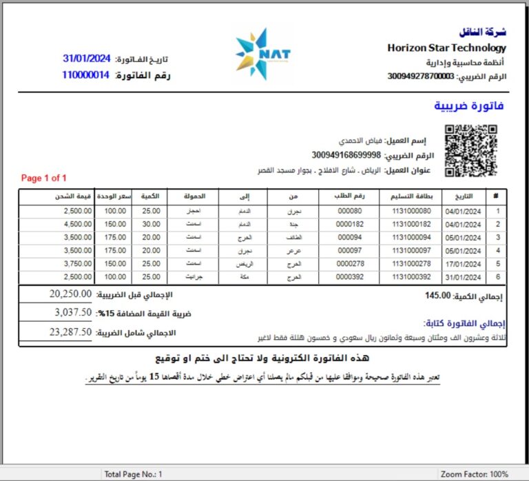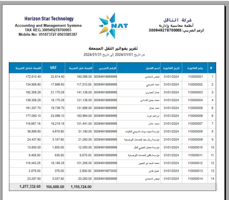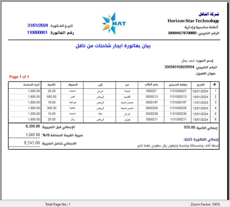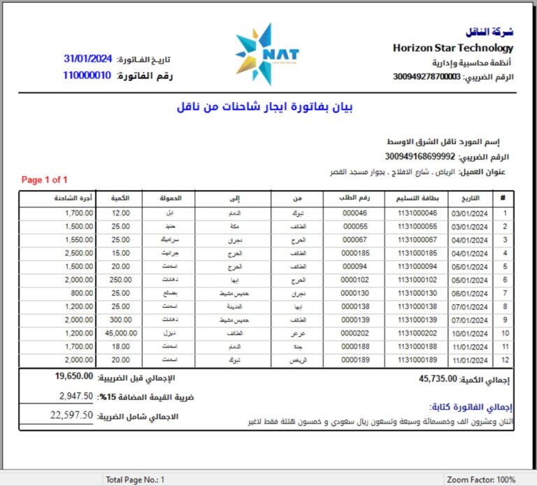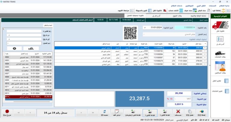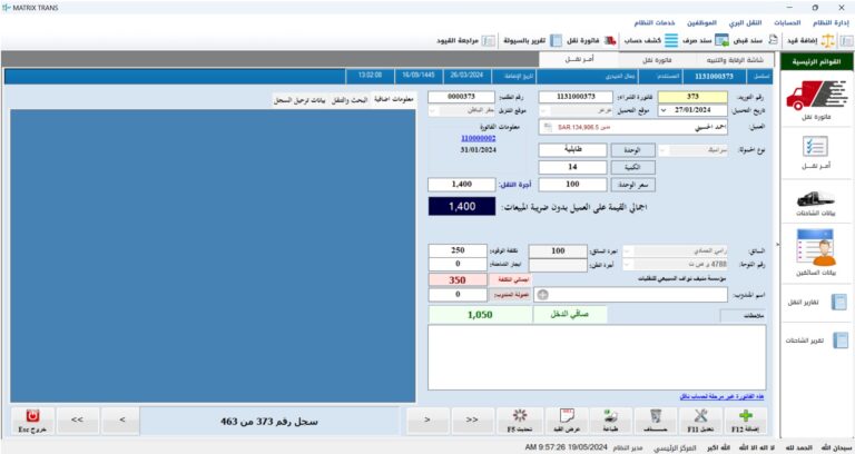 *تقييد بيانات أوامر النقل واصدار فواتير تجميعية ضريبية لجميع الرحلات الصادرة الى العملاء.